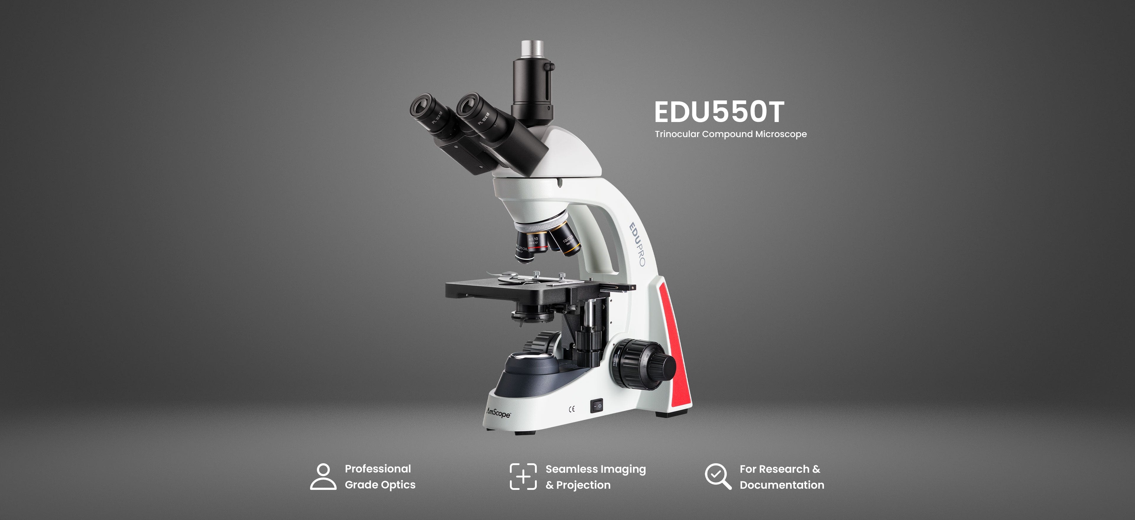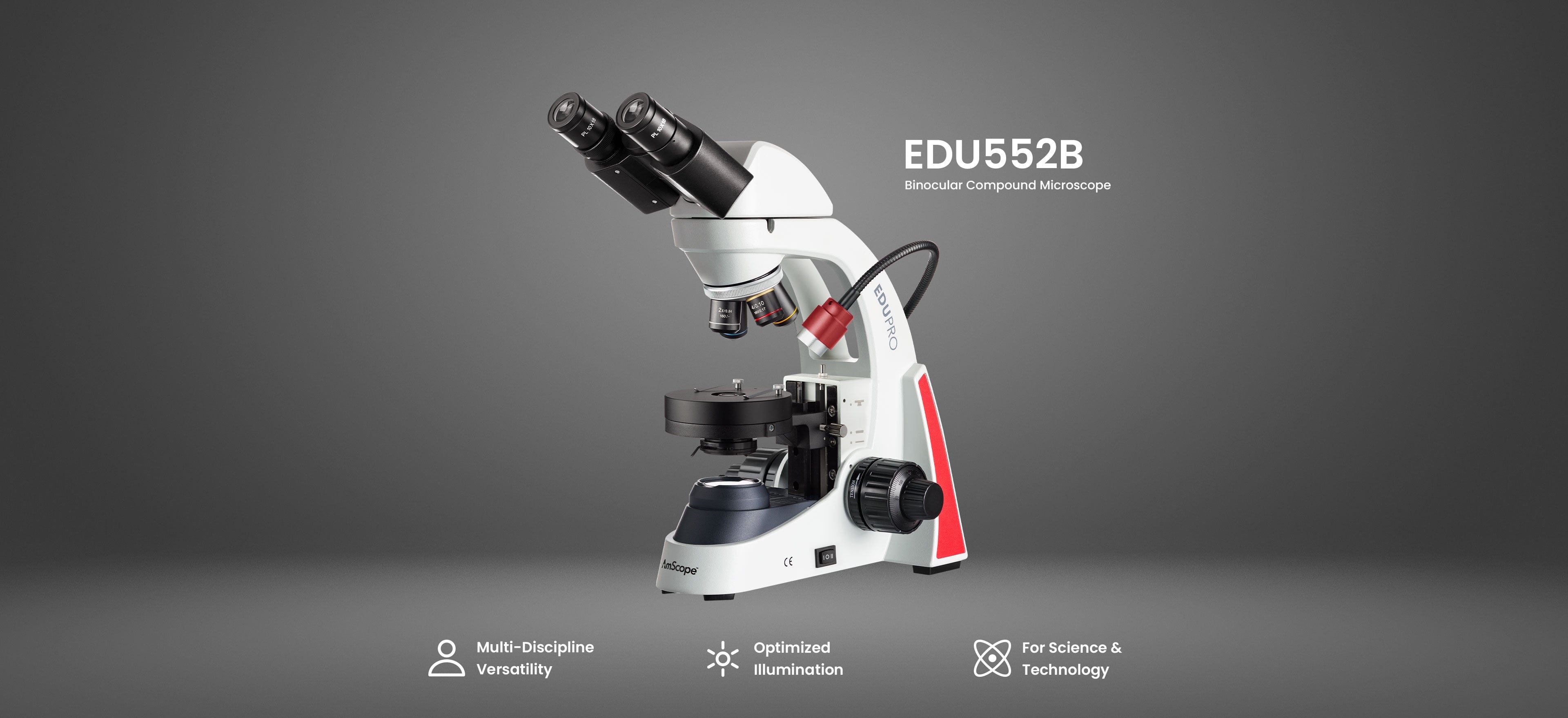 - Head: Binocular, 30° incline — ergonomic viewing for extended sessions.
